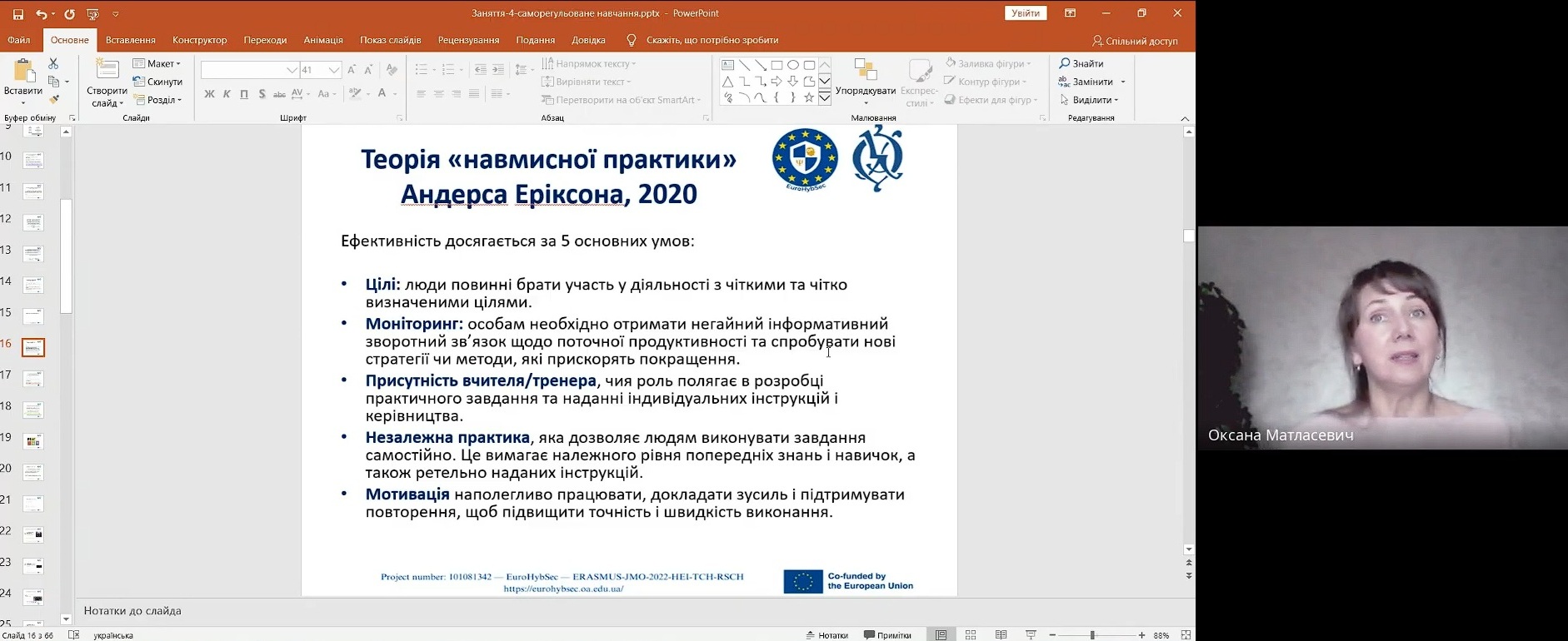 У межах реалізації проєкту ЄС Erasmus+ Jean Monnet Module “Self-Regulated Studies of Hybrid Threats and European Security” у Національному університеті «Острозька академія» успішно триває викладання сертифікатної програми «Психологія саморегульованого навчання».